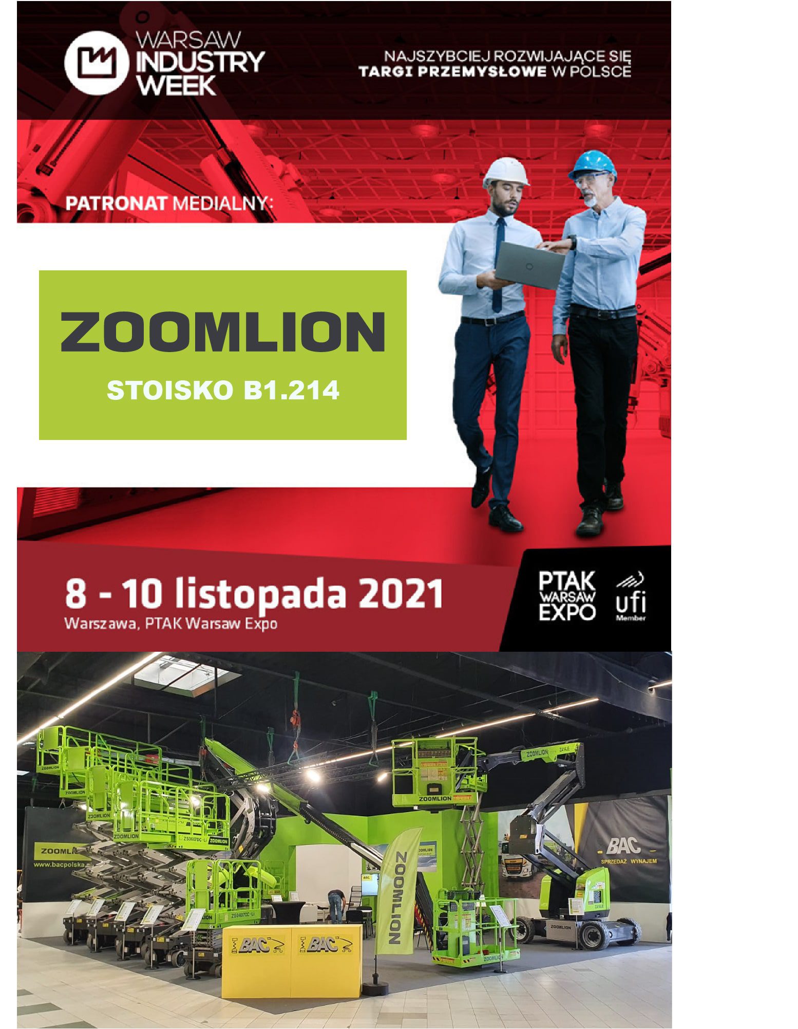 Już od 08 listopada 2021 roku zapraszamy do odwiedzin naszego stoiska na Warsaw Ptak Expo w hali B1.214. Wszyscy chętni będą mogli zapoznać się z najnowszymi modelami marki Zoomlion. W tym czasie będą prezentowane nowe rozwiązania zastosowania baterii litowych w podestach ruchomych, podnośnikach i zwyżkach. Ale to nie wszystko. Prezentujemy również wiele innych ciekawych rozwiązań ułatwiających pracę. Zapraszamy!