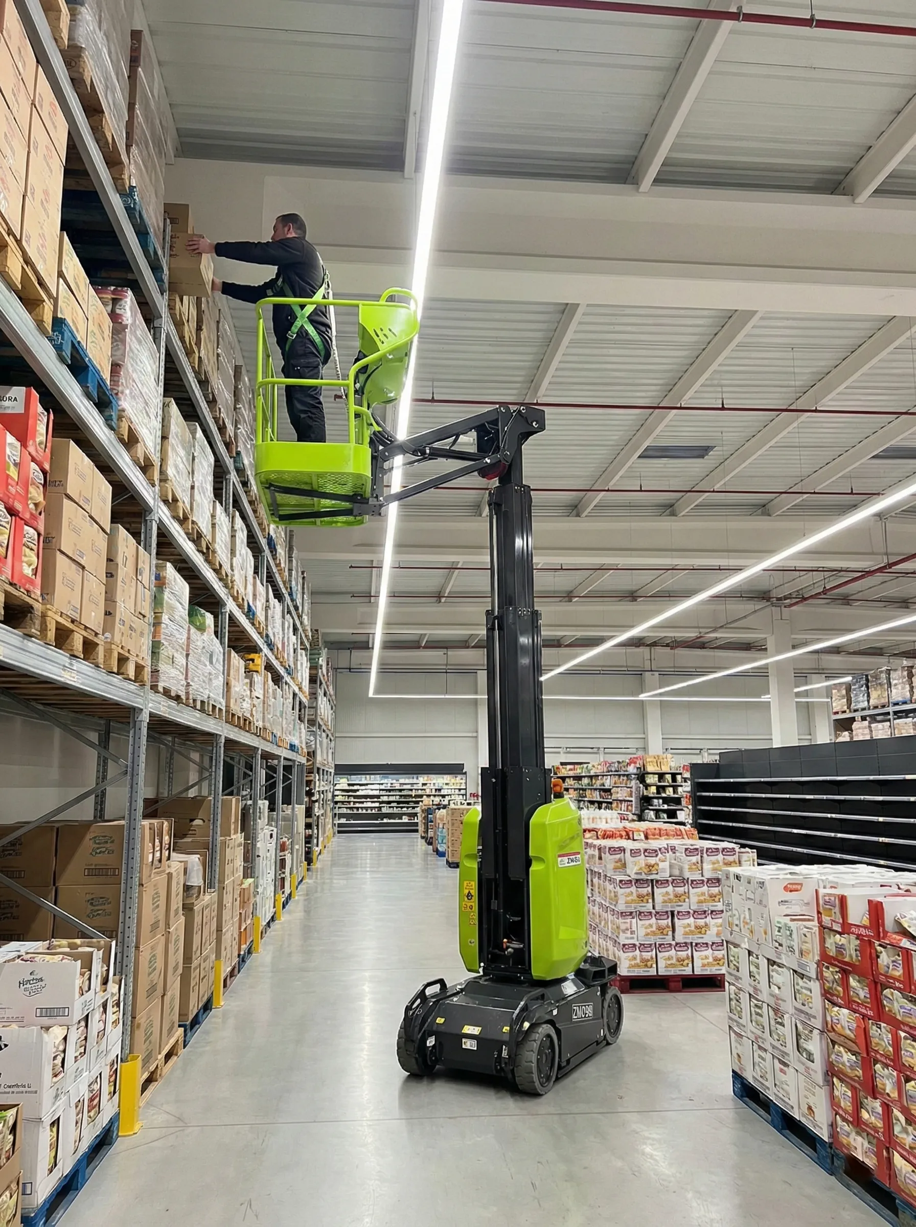 Kompaktowe wymiary – zaledwie 1 metr szerokości – sprawiają, że model ZMP09J doskonale sprawdza się w ciasnych i trudno dostępnych przestrzeniach. Idealnie nadaje się do zastosowania w magazynach, fabrykach, centrach handlowych, a także podczas prac budowlanych i serwisowych na wysokości.