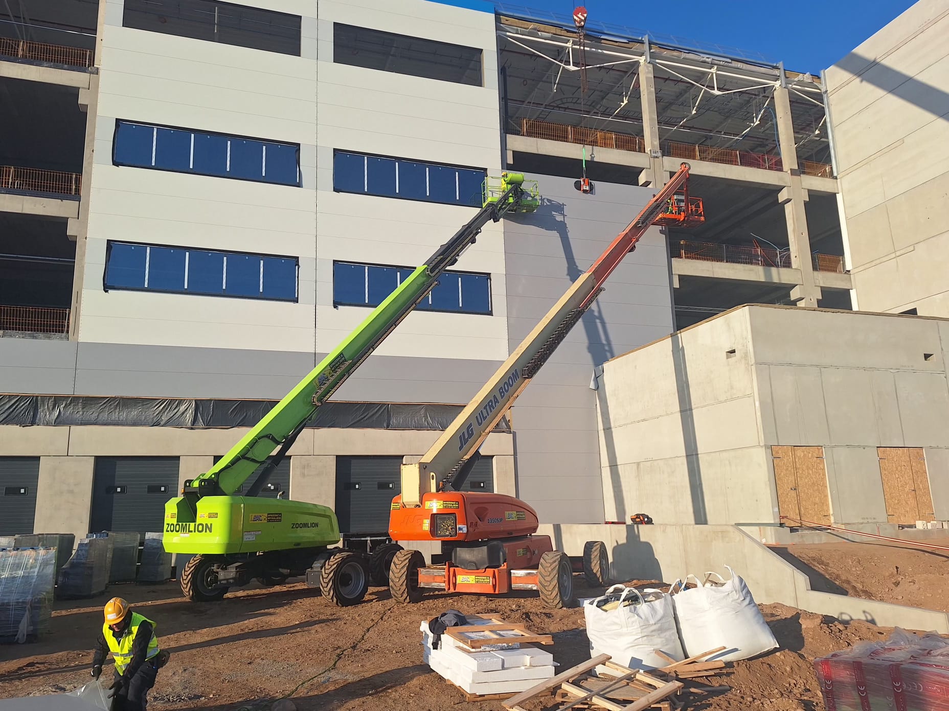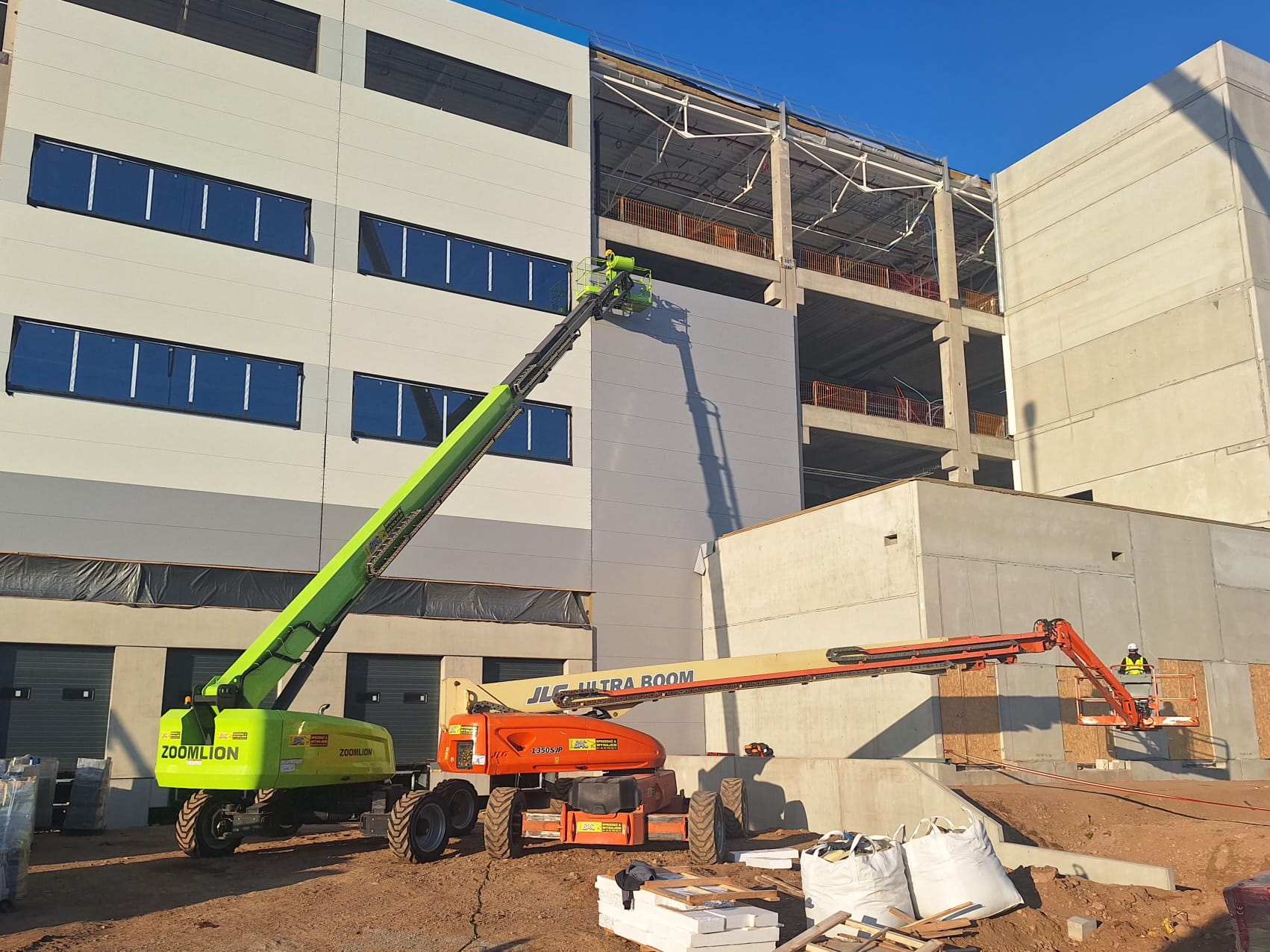 Nasze Zoomlion ZT42J-V oraz JLG 1350SJP podczas budowy nowego obiektu przemysłowego