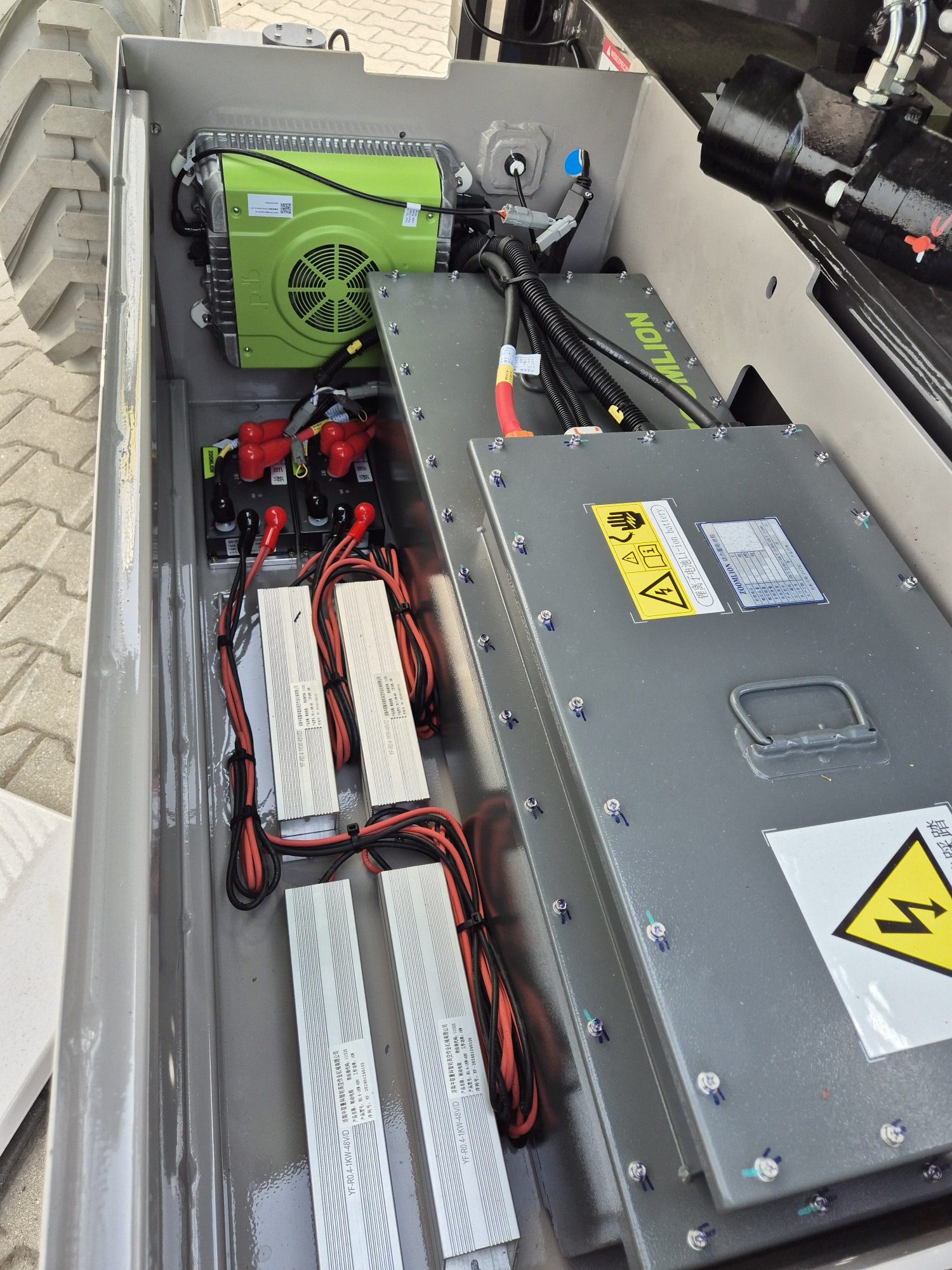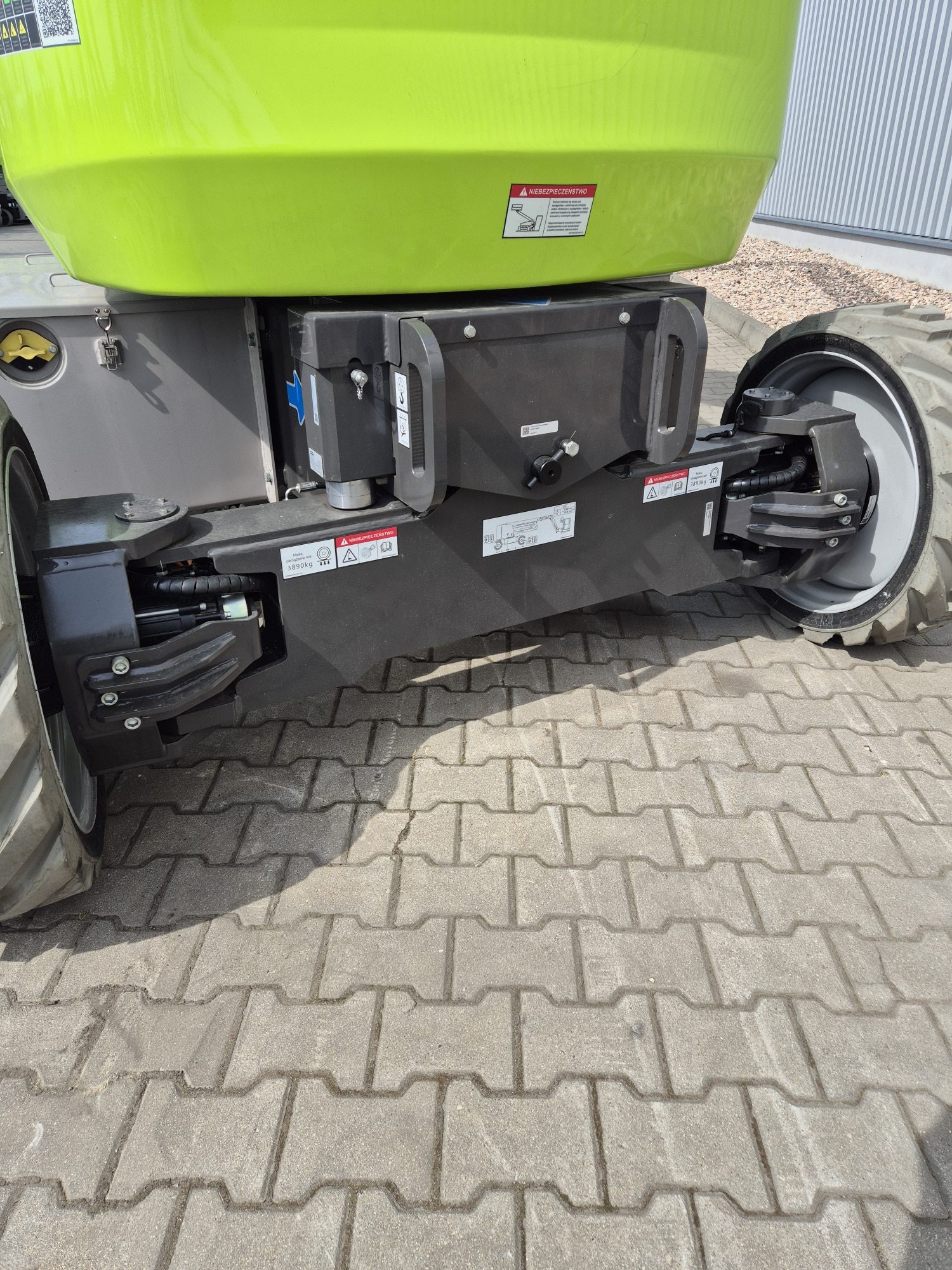 To podnośnik przegubowo teleskopowy o napędzie elektrycznym sprawdzającym się w pracy wewnątrz jak i na zewnątrz dzięki bardzo wydajnym napędom AC 4×4 i zastosowaniu baterii Lithium, dodatkowo posiada opony terenowe non marking.