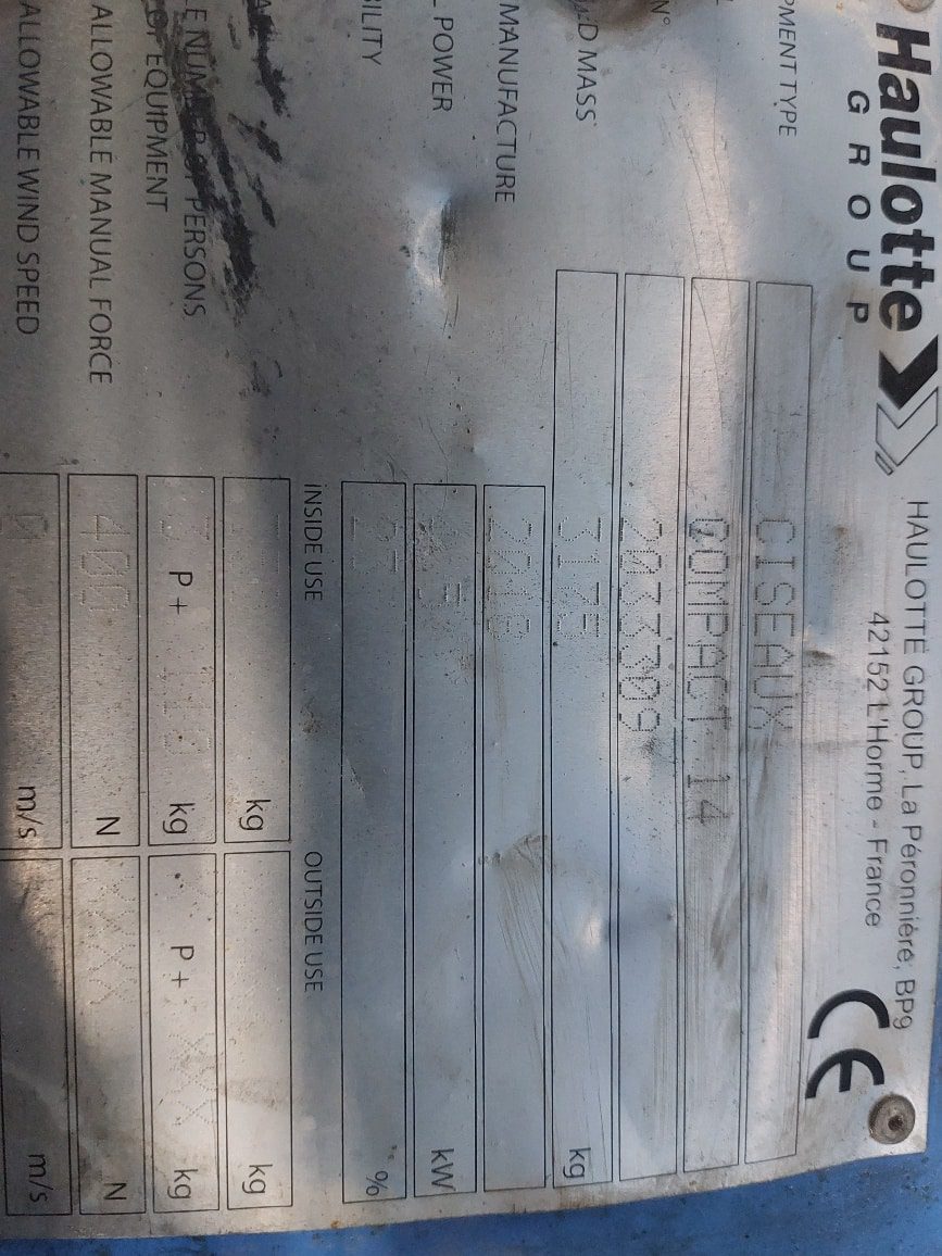 Oferujemy na sprzedaż podest nożycowy Haulotte Compact 14 odkupiony od 1 właściciela. Rok produkcji 2018, licznik mth 498. Na akumulatorach TROJAN w 90% Podnośnik w doskonałym stanie.