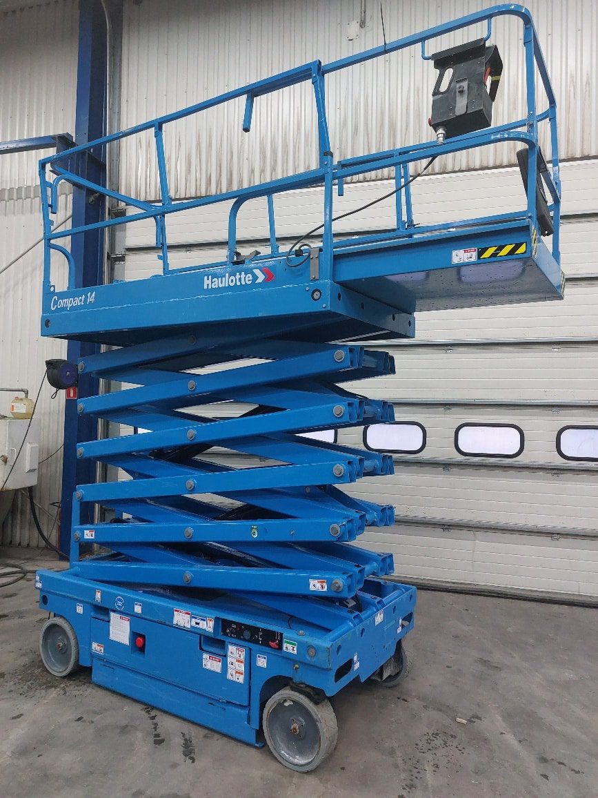 Oferujemy na sprzedaż podest nożycowy Haulotte Compact 14 odkupiony od 1 właściciela. Rok produkcji 2019, licznik mth 392. Na akumulatorach Trojan w 70% Podnośnik w doskonałym stanie.