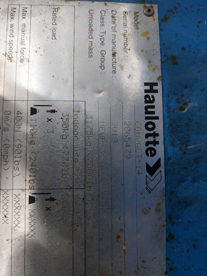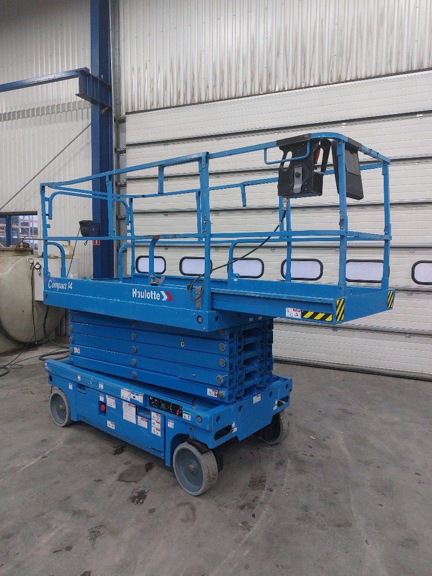 Oferujemy na sprzedaż używany podest nożycowy elektryczny Haulotte Compact 14 odkupiony od 1 właściciela. Rok produkcji 2019, licznik mth 430. Na akumulatorach AGM w 90%