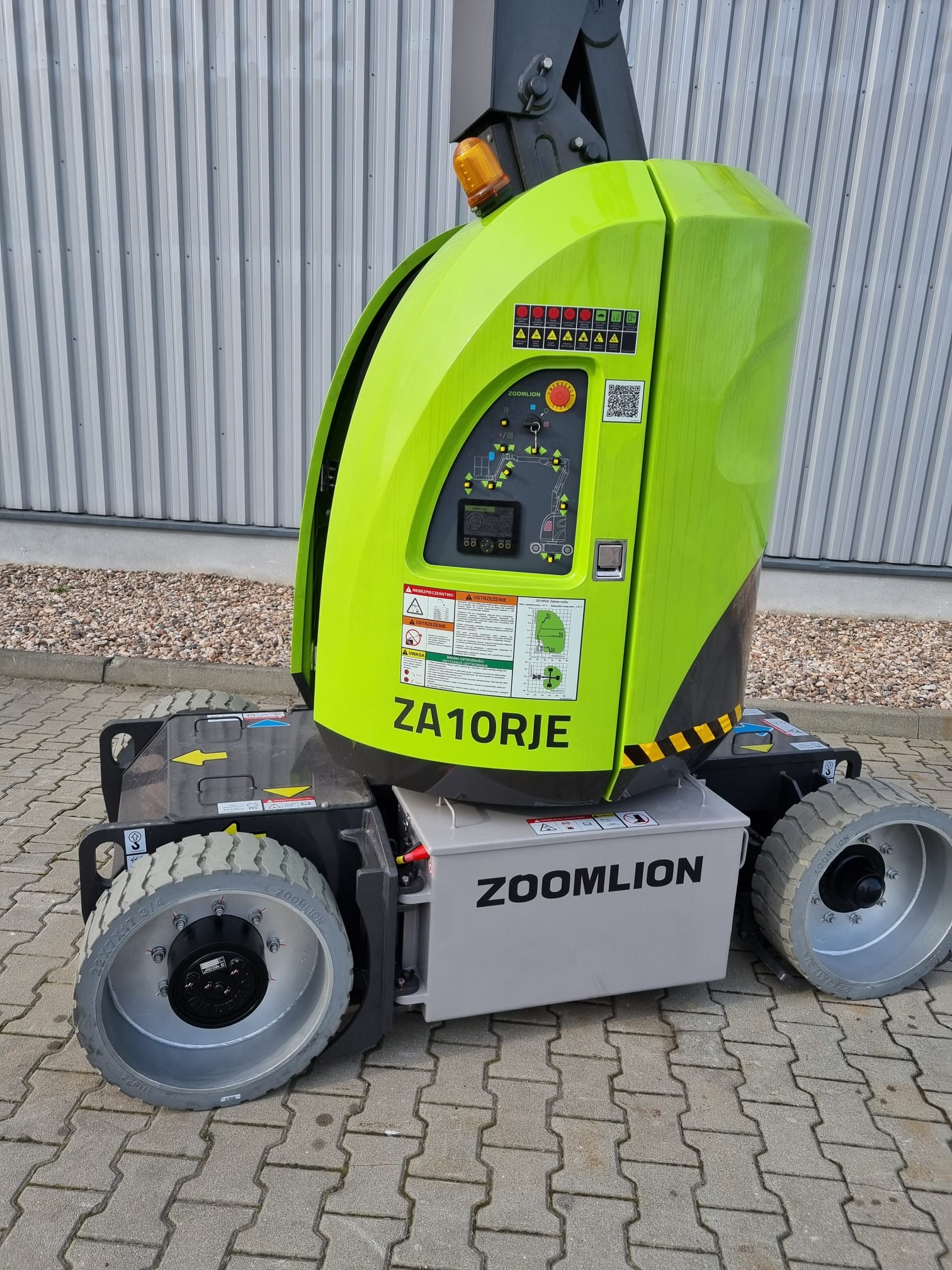 Zoomlion ZA10RJE o wysokości roboczej 11,55 m oraz udźwigu 230 kg to doskonały wybór dla osób chcących wynająć podest ruchomy do pracy na wysokościach. Podnośnik jest niezwykle kompaktowy, obrót 360 stopni gwarantuje dostęp w trudno dostępne miejsca.